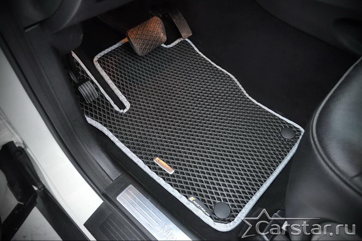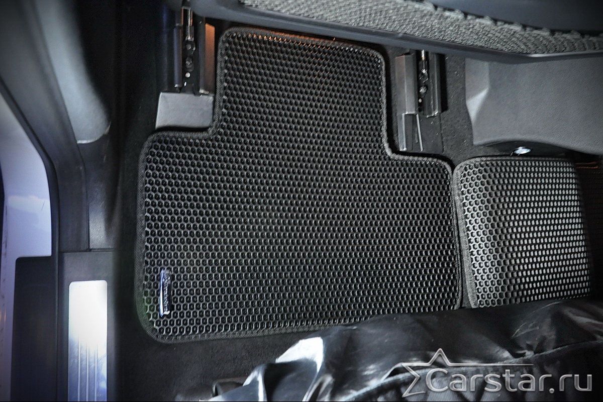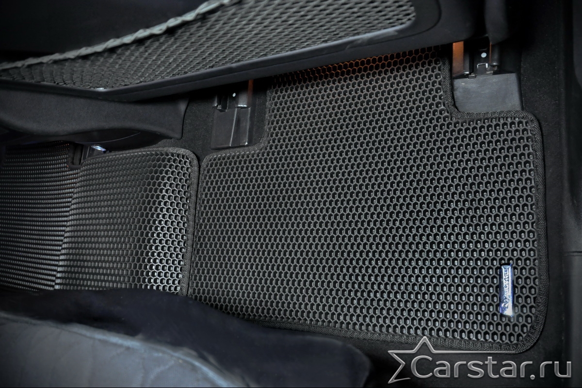 Текстильные коврики надёжно крепятся с помощью оригинальных систем фиксации. Обратная сторона имеет противоскользящее покрытие, что обеспечивает защиту от смещений и безопасность. Максимальное удобство достигается точными лекалами.